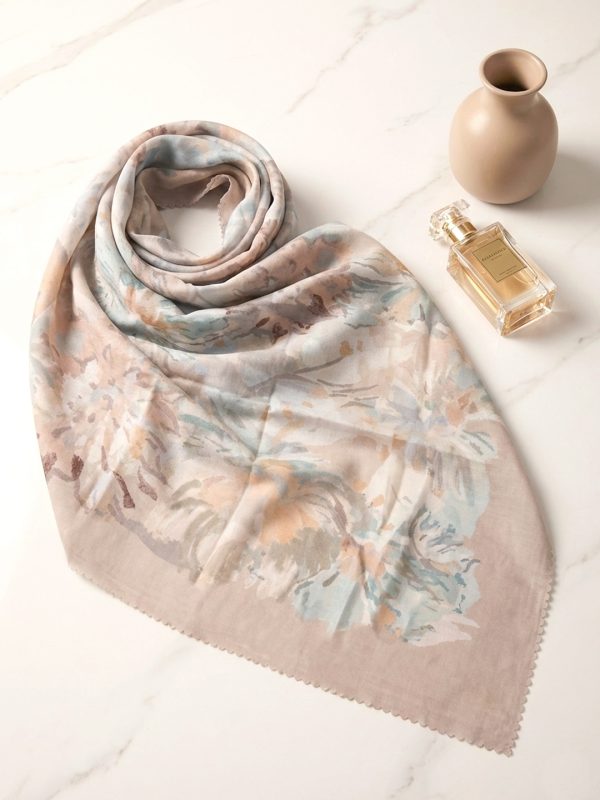 Elevate your everyday elegance with this Abstract Floral Scarf, a delicate fusion of art and femininity. Featuring an abstract floral print in muted beige, soft blue, and warm peach tones, this scarf brings a calm, refined charm to any look. The painterly florals feel light and airy, creating a timeless aesthetic that transitions beautifully from day to evening.