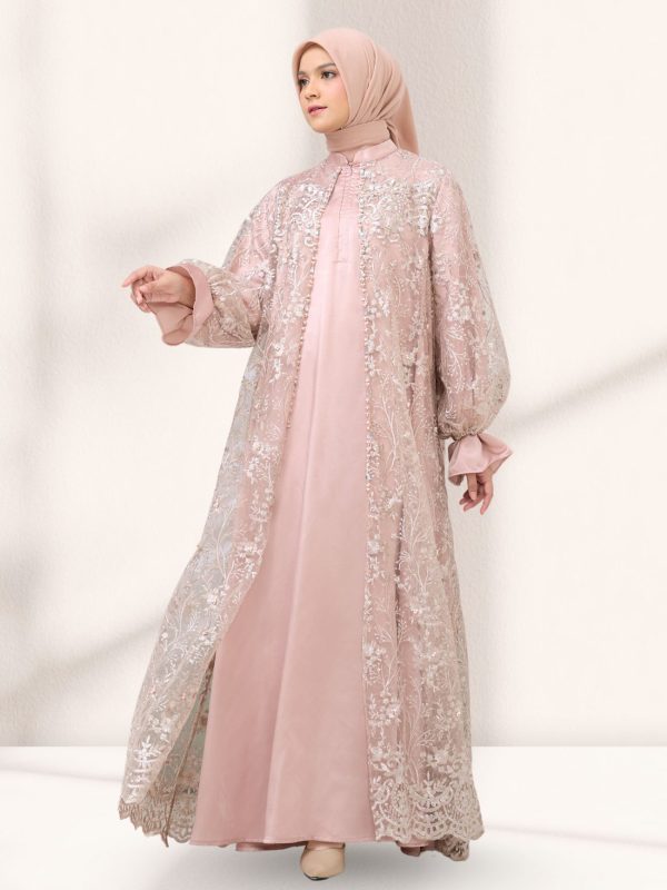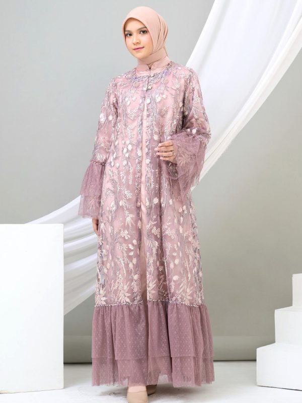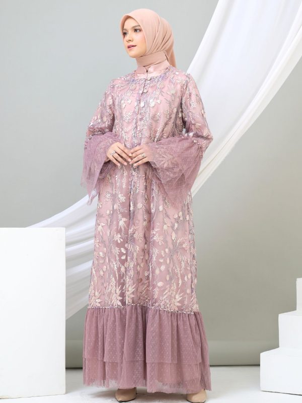 An elegant two piece (inner and outwear) statement gown designed for graceful celebrations, crafted from intricate embroidered lace layered over a soft inner dress. Featuring a refined stand collar with a concealed button placket, this gown is elevated by airy sheer sleeves finished with gentle flare details that add movement and romance. The delicate floral embroidery is subtly accented with a soft sheen, while the tiered tulle hem creates a flowing, ethereal silhouette. Feminine, polished, and timeless, the Mirelle Embroidery Gown is perfect for festive occasions, formal events, and special moments that call for understated luxury.