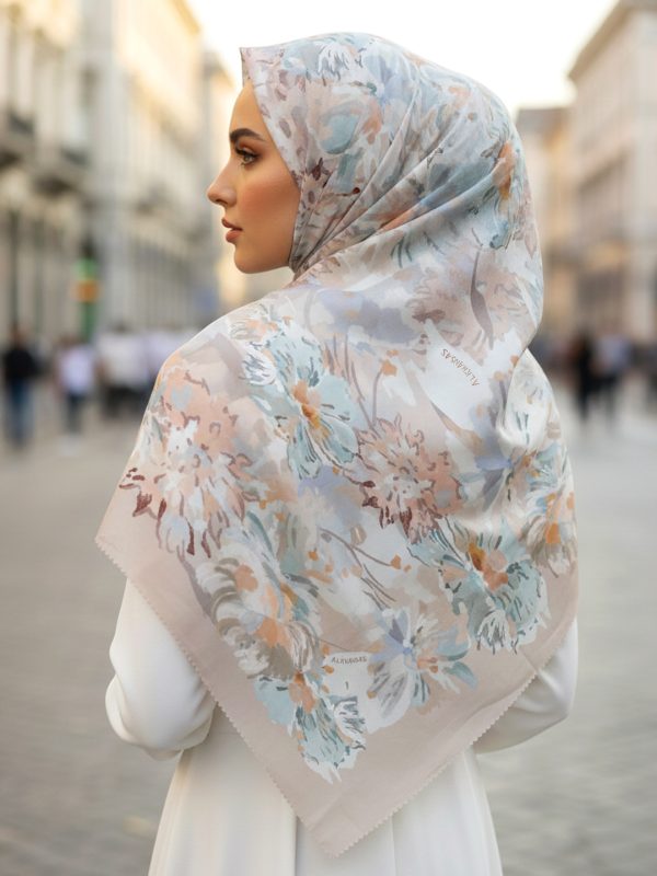 Elevate your everyday elegance with this Abstract Floral Scarf, a delicate fusion of art and femininity. Featuring an abstract floral print in muted beige, soft blue, and warm peach tones, this scarf brings a calm, refined charm to any look. The painterly florals feel light and airy, creating a timeless aesthetic that transitions beautifully from day to evening.